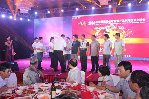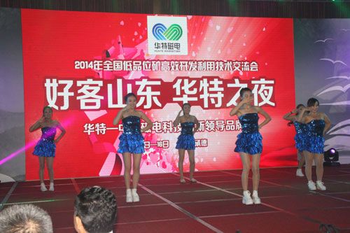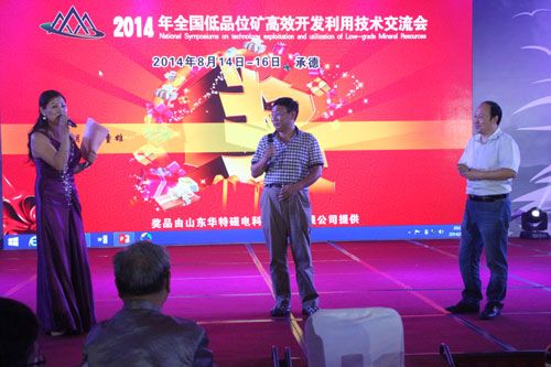 8月14日至17日,2014年全國低品位礦高*開發利用技術交流會在承德市嘉和大酒店隆重舉行。會上,我公司展出了提精降渣磁選機、懸浮式磁選機、電磁淘洗精選機等新產品。我公司作為會議鉆石級贊助商還于15日晚舉行了“華特之夜”答謝宴會,宴會還穿插了精彩的文藝節目和抽獎活動,氣氛活躍。會上,公司與許多客戶進行了交流洽談,收到了預期的效果。