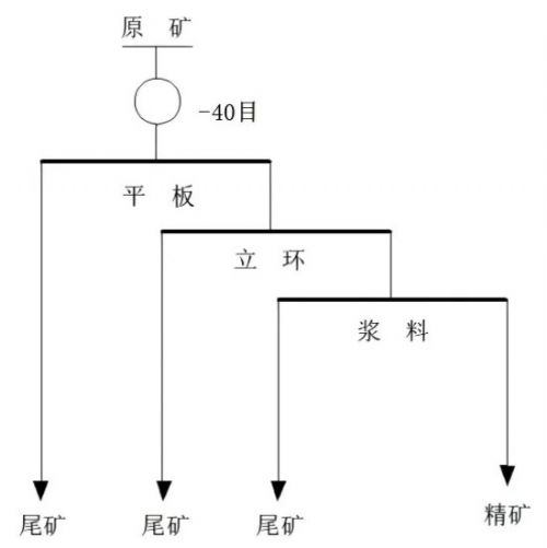 2.花崗巖石板材切割過程中產生的顆粒狀尾料破碎、磨礦、篩分至-40目,經平板+立環+漿料磁選。試驗流程見圖2,試驗結果見表2。