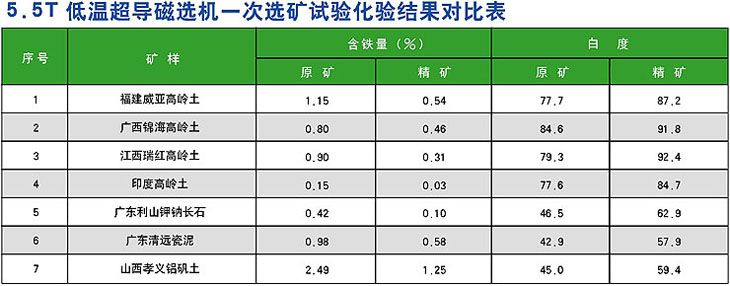 雙筒交替分選、沖洗,可在不退磁的情況下連續運行,提高了生產效率。處理高嶺土的能力高達干礦100噸/天,約為同效率的電磁磁選機的5~10倍。
