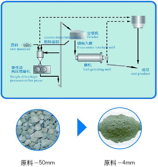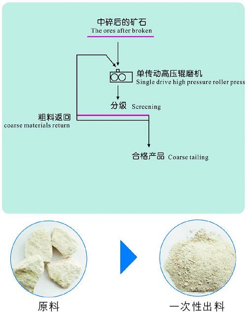 單傳動高壓輥磨機(jī)非金屬礦應(yīng)用工藝流程圖