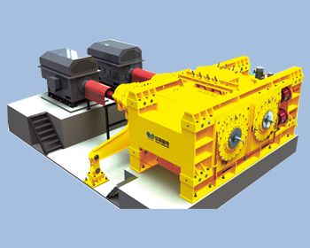 雙傳動高壓輥磨機是綜合國內外當前先進技術設計制造技術發展起來的一款新型設備。它是利用高壓料層粉碎原理設計的一種新型節能粉磨設備。由兩個相向同步低速轉動的擠壓輥組成,一個為固定輥,一個為活動輥,均由大功率的電機帶動。物料從兩輥上方均勻給入,被擠壓輥連續帶入輥間,受到 50-300M p a 的高壓作用后,變成密實的料餅從機下排出。排出的料餅,除含有一定比例的成品外,在非成品顆粒的內部結構中,因受高壓擠壓而充滿了大量的微小裂紋,使物料的易磨性大為改善。經過擠壓后的物料,經過打散分級篩分后,小于 0.8m m的成品細料可達 30% 左右 小于 5m m 的物料可達 80% 以上。因此,在進一步的粉磨過程中,可較大幅度的降低粉磨能耗,使粉磨設備的生產能力得以充分發揮,一般可使球磨機系統產量提高 20%-50%,總能耗可降低 30-50% 以上